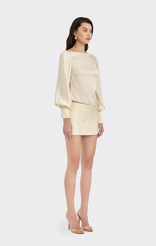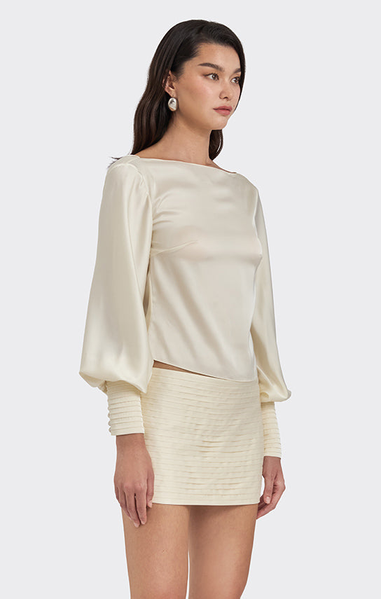 • Puff sleeves, cowl back neck