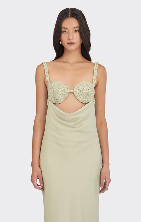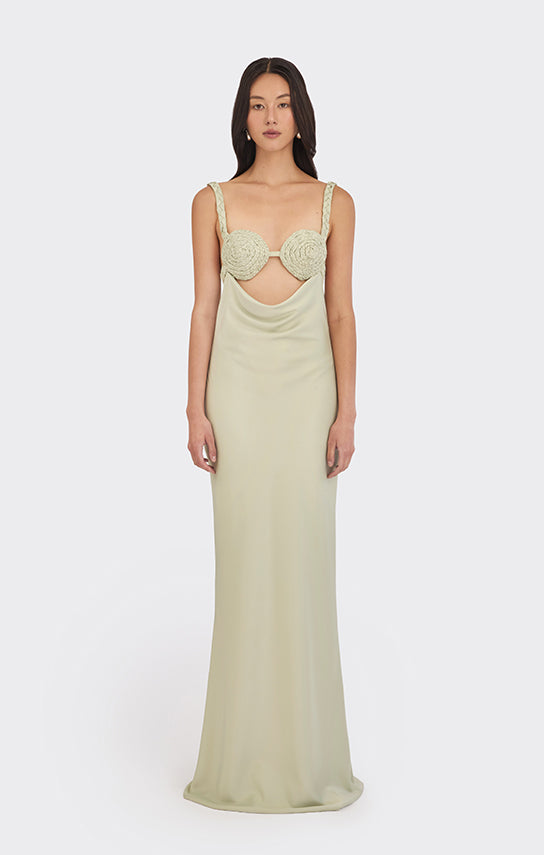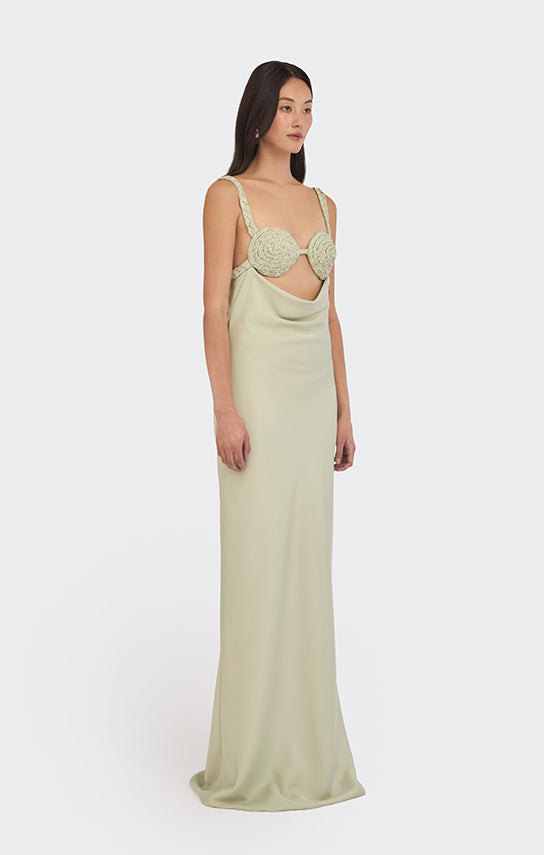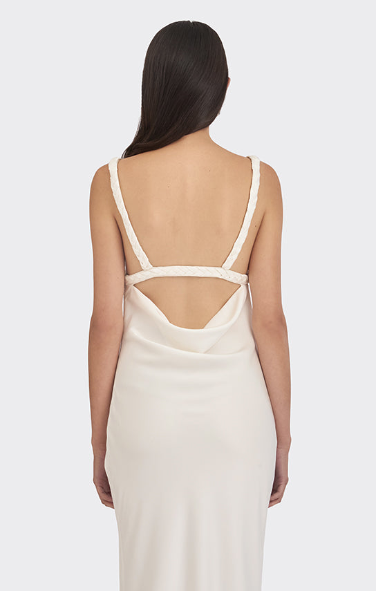 Sculpted and suspended, this maxi dress continues the Spiral language through softness.