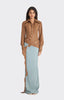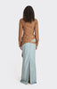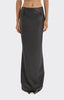 A grounded base for spiraling thoughts. This low-slung maxi skirt anchors the silhouette in quiet strength refined yet rebellious.