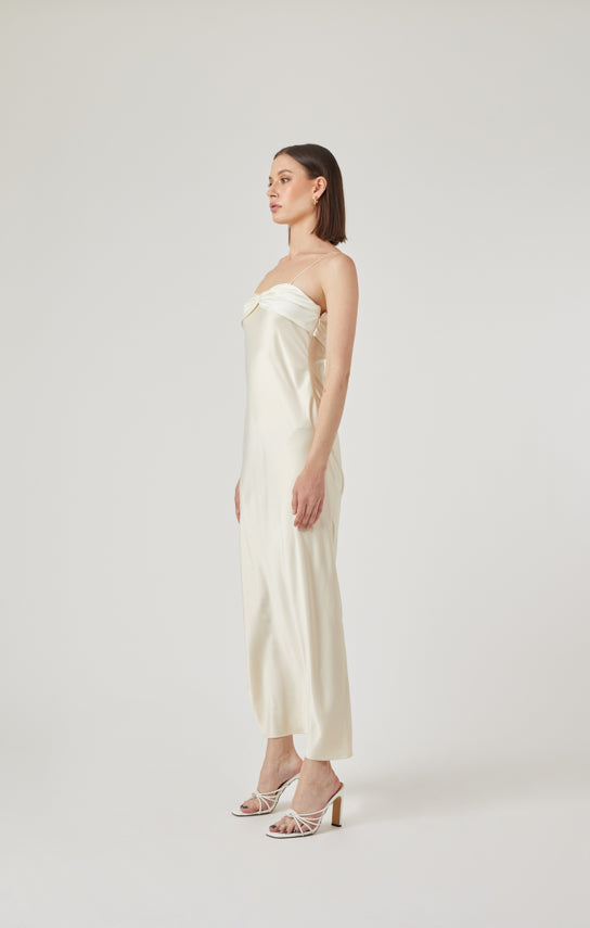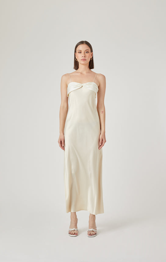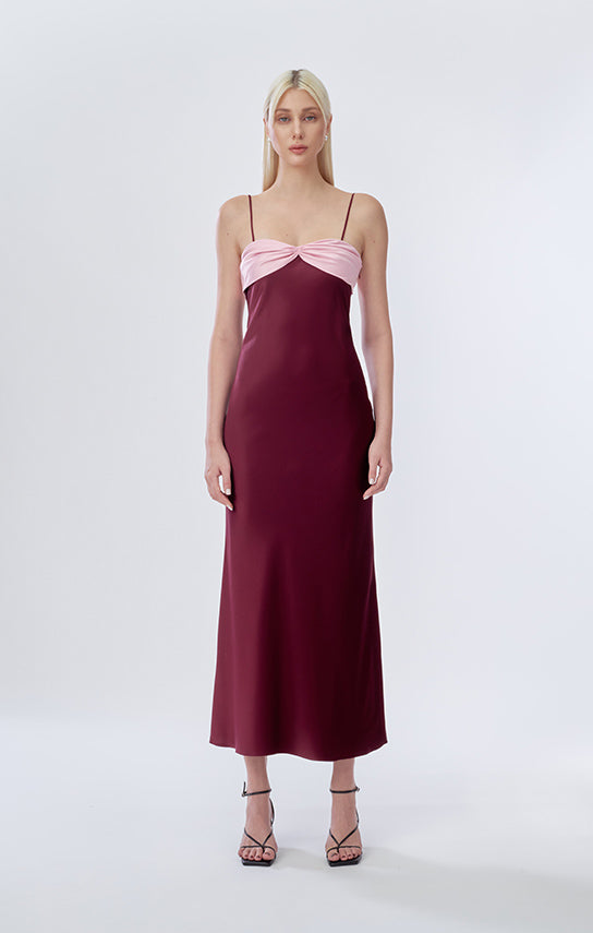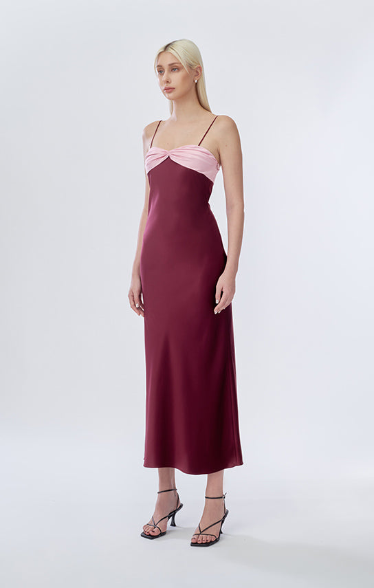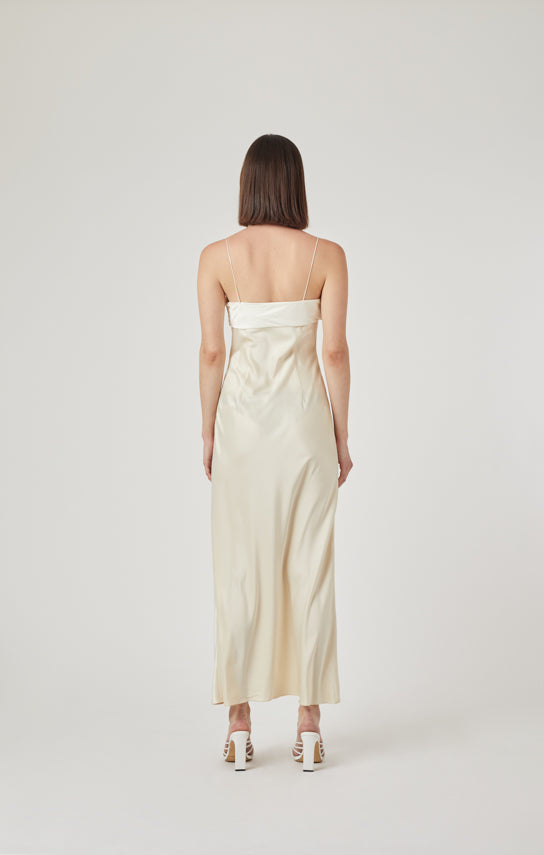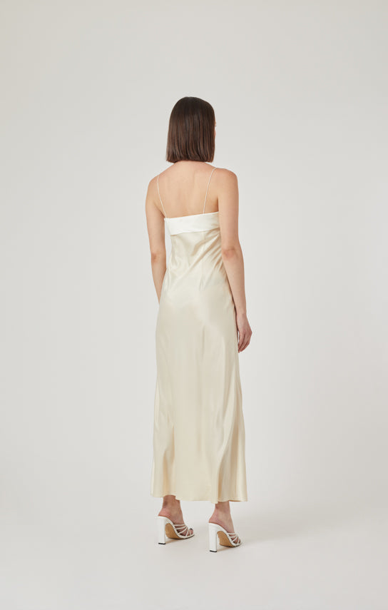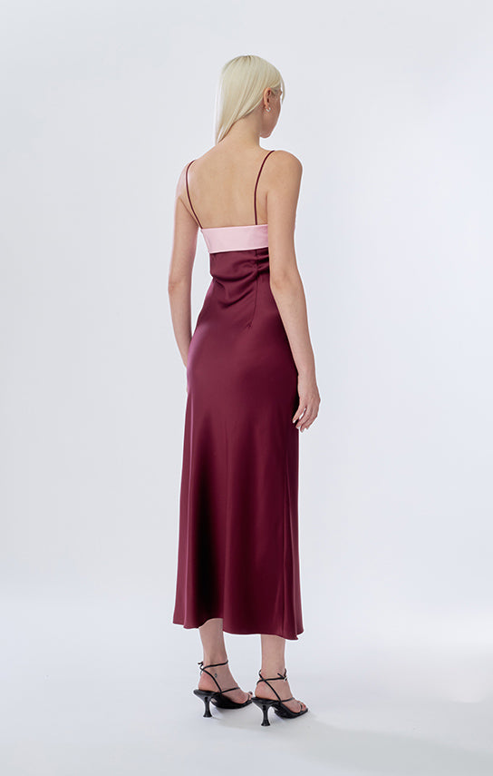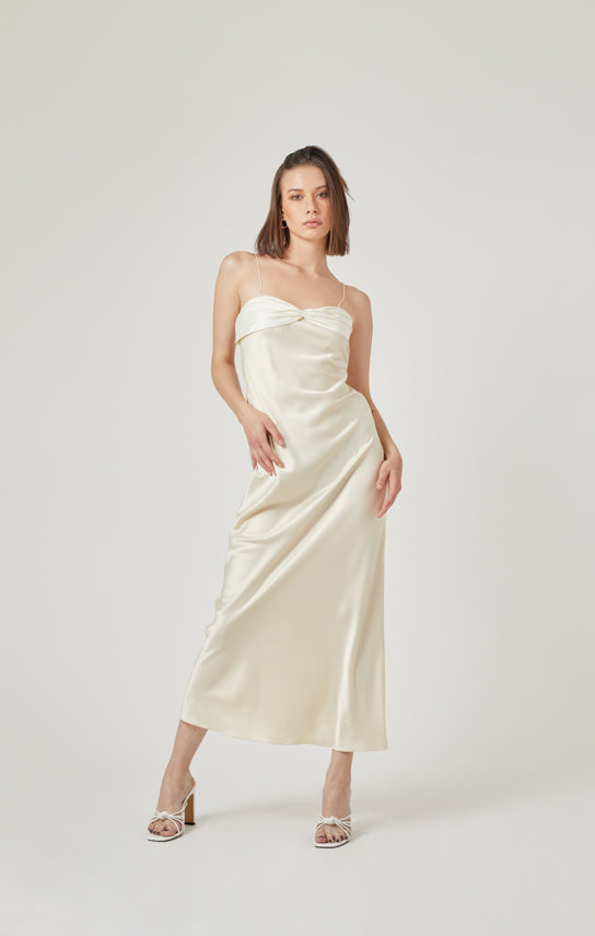 Stolen Studios' new Swan Slip Dress has a signature clean-cut, featuring soft elegant hand- tucked mini drapes over the bust and spaghetti straps. The use of the finest silk satin in a two-tone black and white cut on the bias to gently skim your figure accentuates only one message - a focus on timeless elegance. Finish off the look with the crystal-embellished black satin pumps.