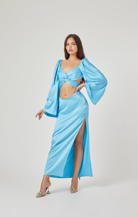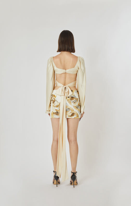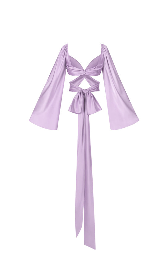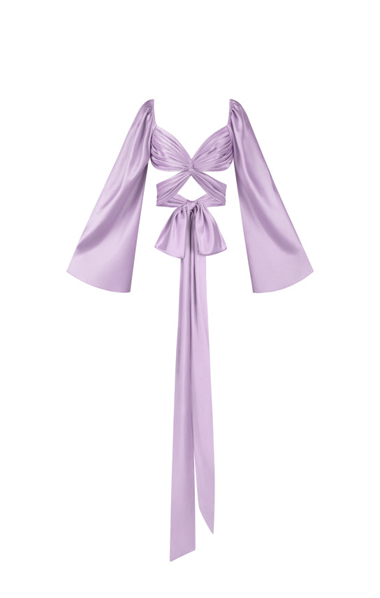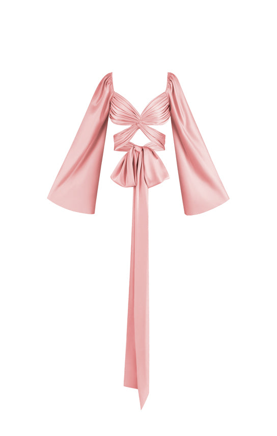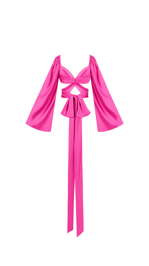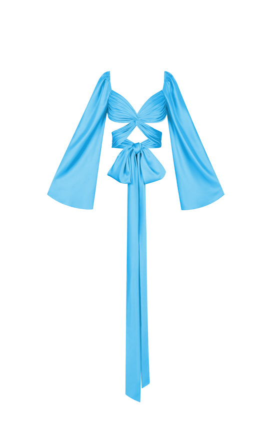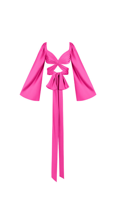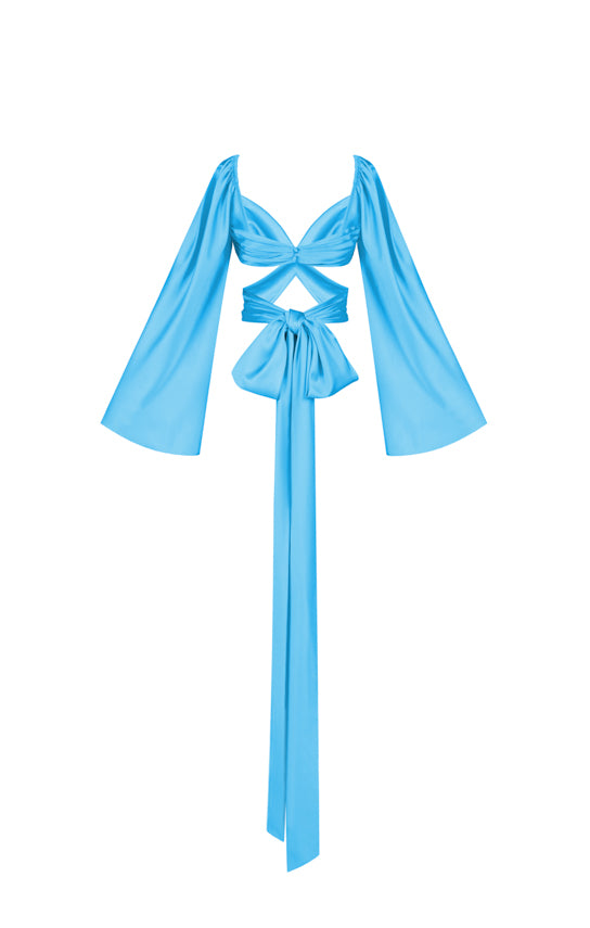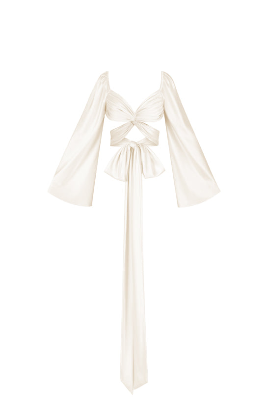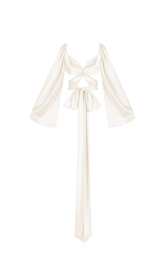 The Butterfly Blouse, crafted from premium silk satin fabric features House of Butterfly’s iconic twist and drape centerpiece which extends to an elegant full length self-tie ribbon at the back. The bell sleeves and hand draped double button on closure at the back showcases House of Butterfly’s meticulous attention to detail. Wear this piece to add flair and a whimsical touch to your look.
