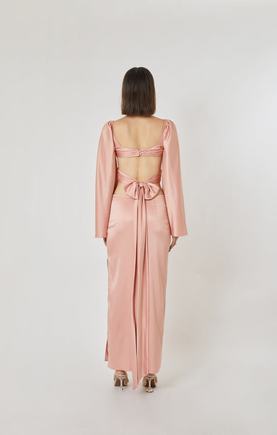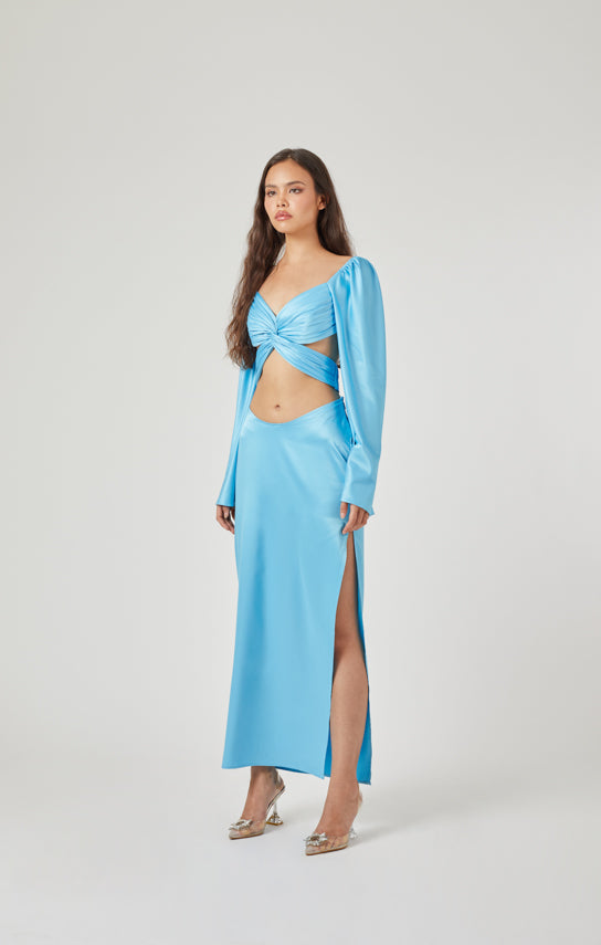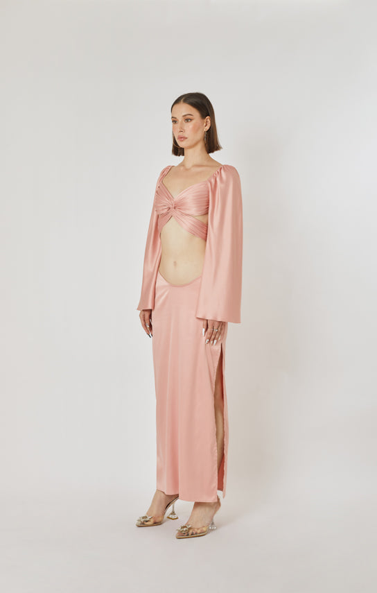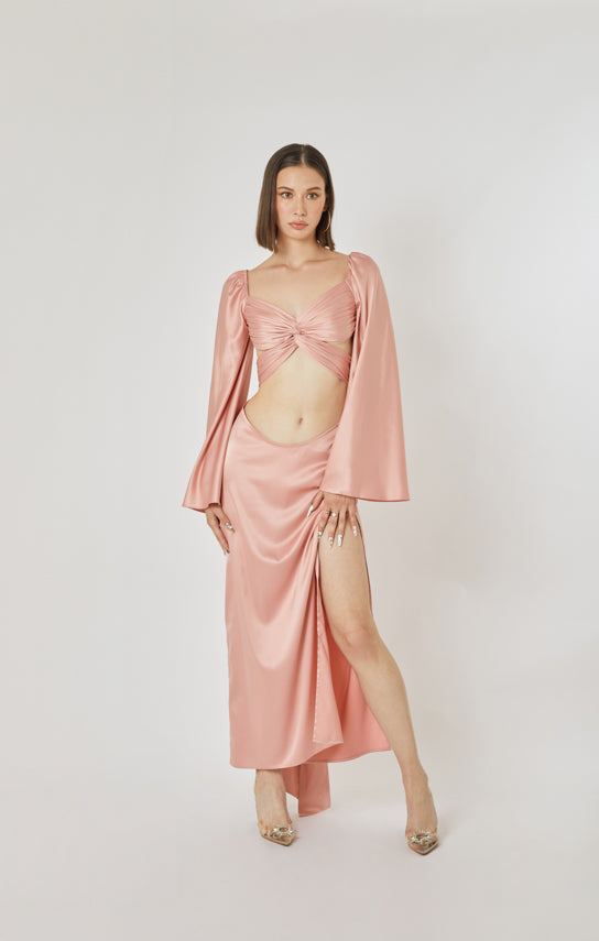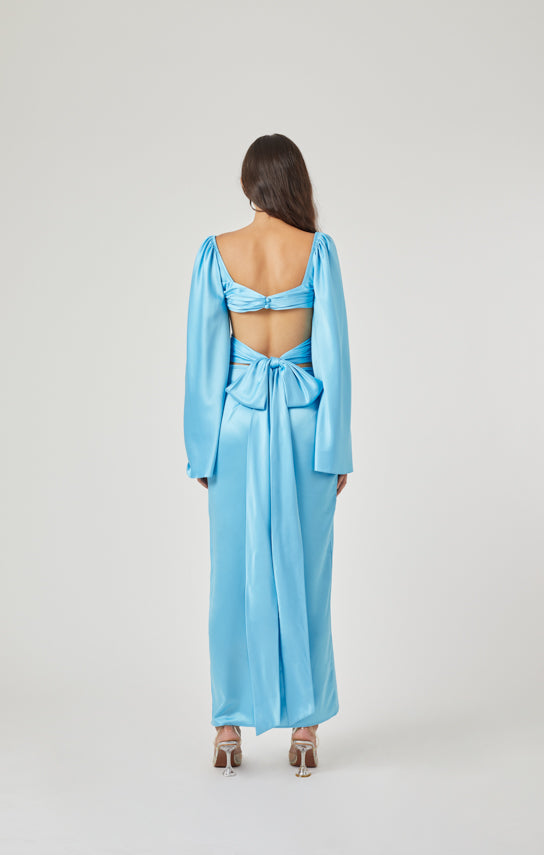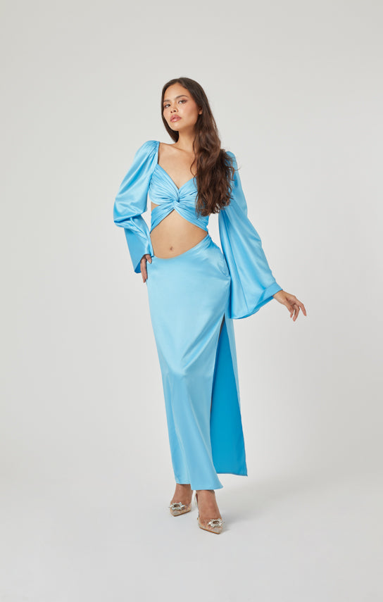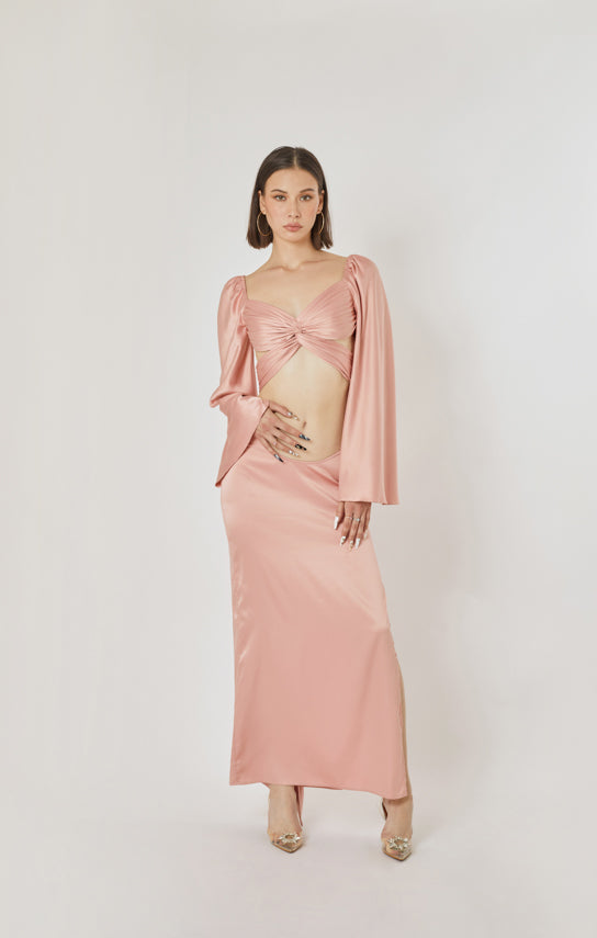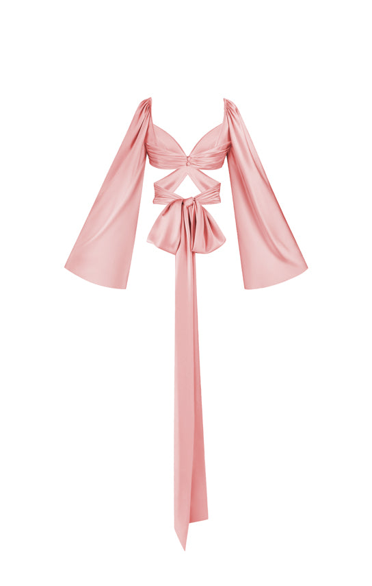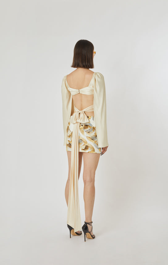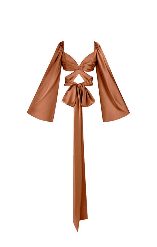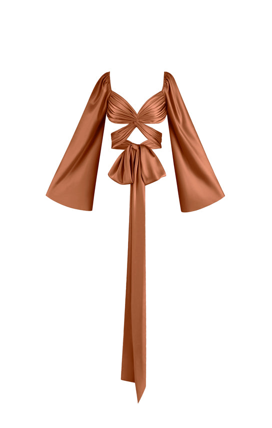 The Butterfly Blouse, crafted from premium silk satin fabric features House of Butterfly’s iconic twist and drape centerpiece which extends to an elegant full length self-tie ribbon at the back. The bell sleeves and hand draped double button on closure at the back showcases House of Butterfly’s meticulous attention to detail. Wear this piece to add flair and a whimsical touch to your look.