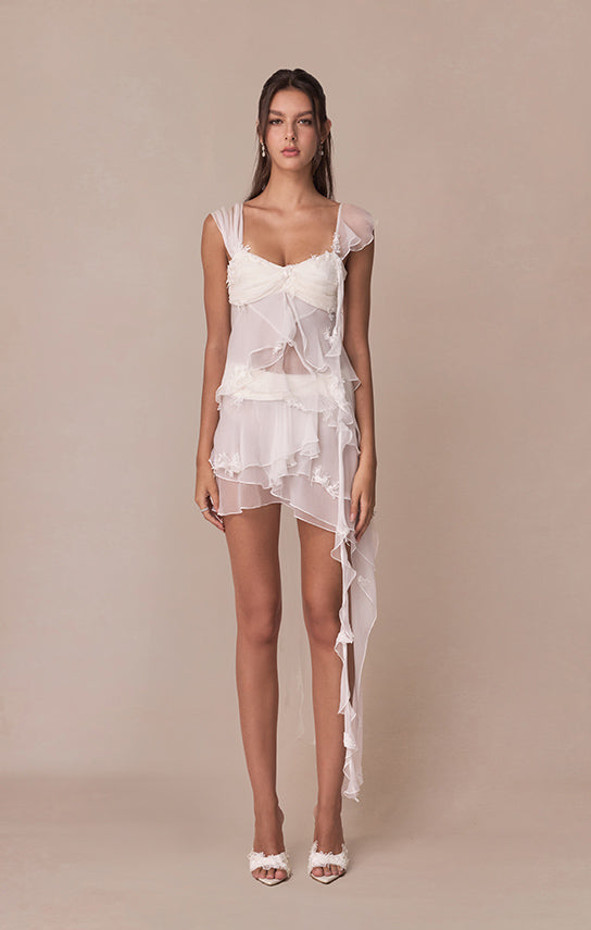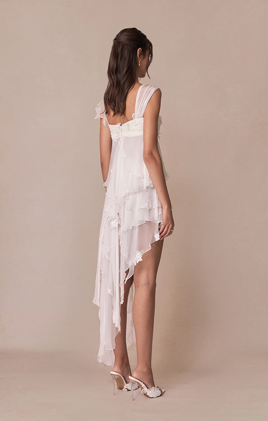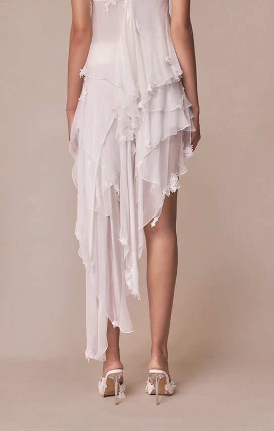 - Crafted from 100% Polyester Crinkled Chiffon with French lace hand-embroidered