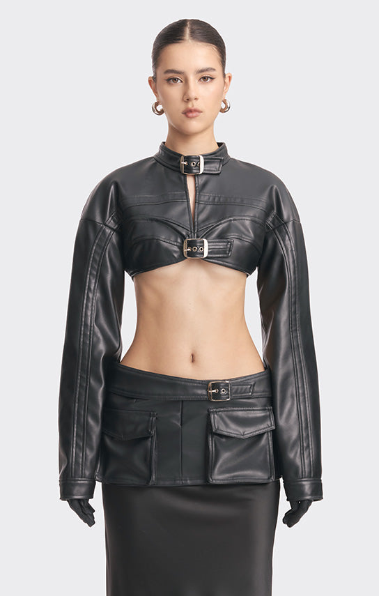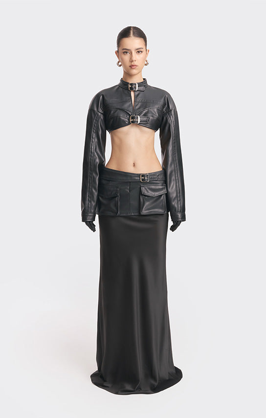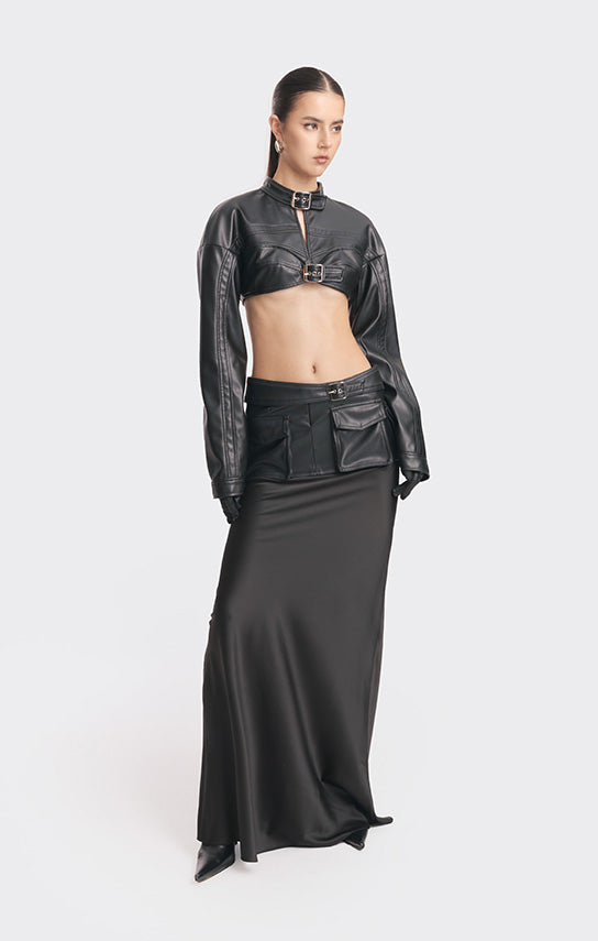 - Perfectly pairs with our Faux Leather Racing Belt Maxi Skirt for a cohesive look