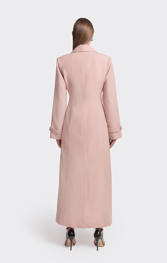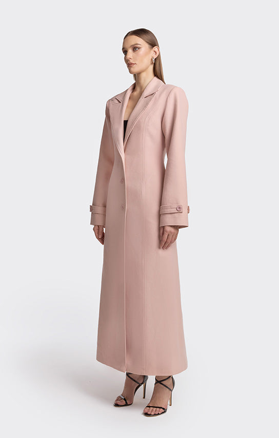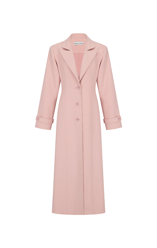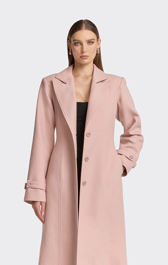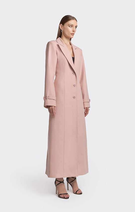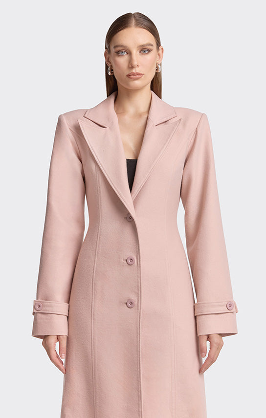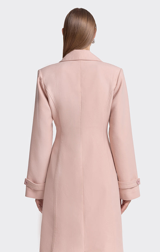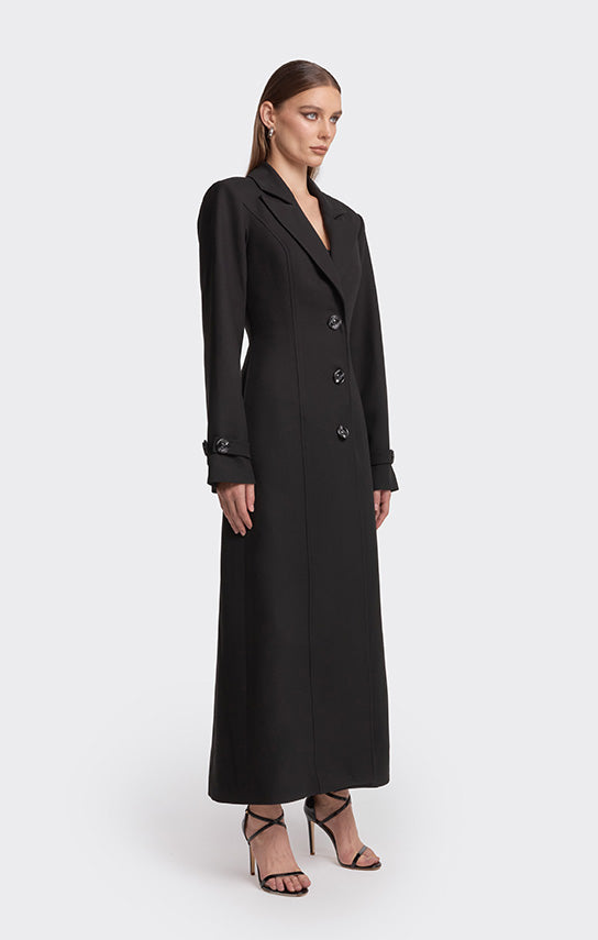 - Tailored fit with a longline silhouette, featuring a single-breasted design and elegant peak lapel